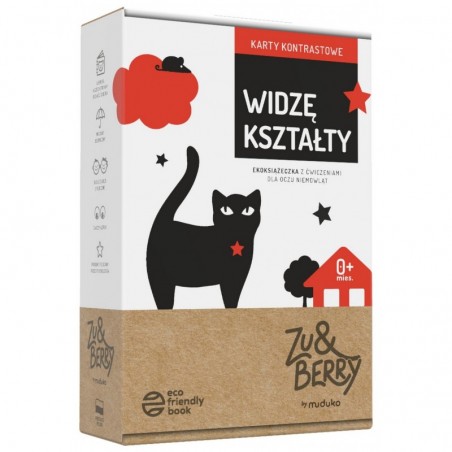 Czarno-białe karty edukacyjne wprowadzają najmłodszych we wspaniały świat doznań sensorycznych. Są doskonałym narzędziem do stymulacji wzrokowej. Szczególnie polecane do zabawy z niemowlętami do 6. miesiąca życia. Atutem jest dwustronność kart. Z jednej strony czerń stanowi wypełnienie prezentowanej figury, zaś na odwrocie staje się dla niej tłem. Prostota obrazków oraz ich liczba dostosowane są do możliwości małych odbiorców. Karciana książeczka jest cennym narzędziem w kształtowaniu ostrości wzroku w pierwszych miesiącach życia. Wczesne doświadczenia percepcyjne podczas zabawy kartami stymulują również rozwój mózgu dziecka. Poprzez takie aktywności już od pierwszych tygodni życia maluszka dorosły świadomie uczestniczy w jego rozwoju percepcyjnym, a także buduje z nim pozytywną więź emocjonalną. dr Agnieszka Lasota, psycholog dziecięcy, psychoterapeuta, socjoterapeuta