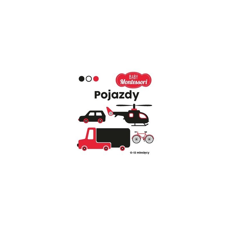 Samoloty, łodzie, samochody i rowery – tyle pojazdów do wyboru! Znajdź je podczas przewracania stron tej książki inspirowanej metodą Montessori. Twoje dziecko zacznie poznawać pojazdy, obserwując czarno-białe rysunki, wzbogaconym czerwonymi detalami!