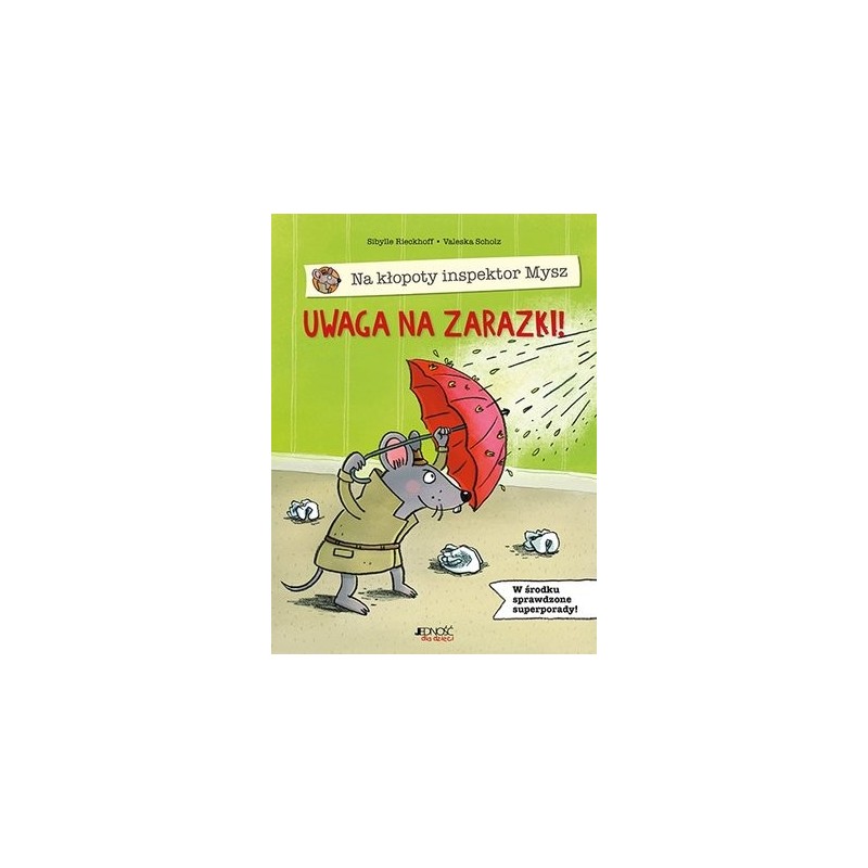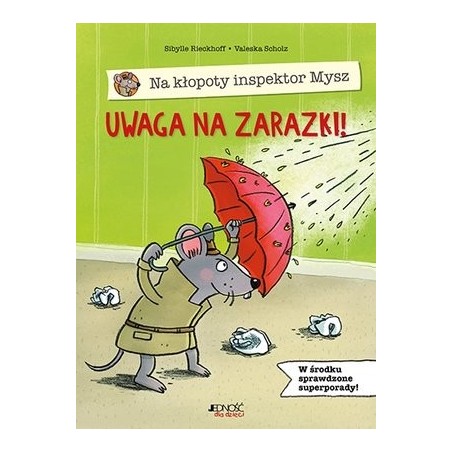 Inspektor Mysz to superbohater, który spieszy na pomoc wszystkim dzieciom! W tym tomiku zmierzy się z okropnymi zarazkami, które lubią rozpanoszyć się w nosach i gardłach dziewczynek i chłopców i sprawić, że muszą położyć się do łóżka i zapomnieć o wesołej zabawie. Dla inspektora Myszy to jednak nie problem! W mig poradzi sobie z nieprzyjemnymi infekcjami i dzieci znów odetchną pełną piersią! Jeśli i wy chcecie pokonać niefajne wirusy i bakterie, koniecznie zaprzyjaźnijcie się z inspektorem Myszą i przeczytajcie tę świetną książkę! Seria książek o inspektorze Myszy to sympatyczne poradniki skierowane do dzieci w wieku przedszkolnym. Ich bohaterem jest zabawna postać bystrej myszki, która ratuje dzieci z różnych opresji. Pomaga im pokonać złość, broni je przed próchnicą, zarazkami albo wstrętnymi wszami… Książki gwarantują dzieciom dobrą zabawę i uczą je wielu ważnych i praktycznych rzeczy.