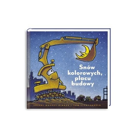 Ogromne maszyny z placu budowy przez cały dzień woziły, podnosiły, mieszały i przerzucały. Okropnie się zmęczyły… A przecież nawet najwięksi twardziele mają ochotę zgasić wieczorem światła i wyłączyć silnik. Dźwig zasypia z pluszowym misiem, wywrotka pochrapuje, betoniarka przykrywa się kołderką…