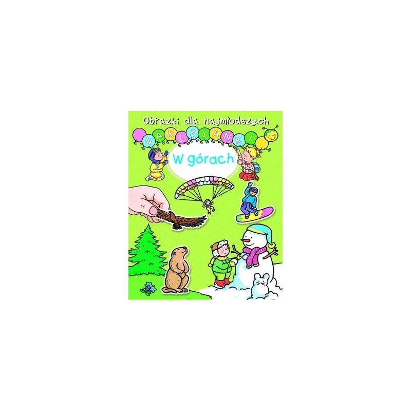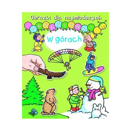 Dzięki zabawie z naklejkami najmłodsze dzieci poznają życie w górach. Na każdej stronie dzieci mogą umieszczać naklejki przedmiotów, które rozpoznały i dopasowały. W serii `Obrazki dla najmłodszych. Naklejanki` ukazały się tytuły: Robimy zakupy, Boże Narodzenie, Szopka, Święty Mikołaj, Dinozaury, Małe stworzonka, Cyfry, Kolory, Zwierzęta, Klub jeździecki, Domowe zwierzątka, W górach, Na wsi, Pojazdy.