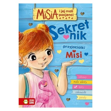 Lubisz Misię, Popika i ich małych pacjentów? Kochasz zwierzęta, chcesz prowadzić Lipową Klinikę i marzysz o tym, aby zostać weterynarzem? Jeśli tak, to ten wyjątkowy album jest właśnie dla Ciebie! Znajdziesz tu mnóstwo cennych informacji o tym, jak opiekować się różnymi zwierzętami, czym je dokarmiać, czego się boją, a co lubią. Razem z Misią rysuj, wypełniaj, przyklejaj i zapisuj swoje sekrety. To wyjątkowy sekretnik dla wszystkich, którzy kochają zwierzęta. Zostań przyjaciółką Misi i poznaj jej sekrety!