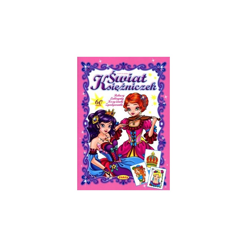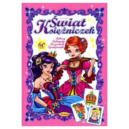 Ta kolorowa książeczka pełna jest rebusów, labiryntów, krzyżówek i zgadywanek. Małe dziewczynki znajdą tu również mnóstwo baśniowych obrazków do kolorowania wraz z barwnymi naklejkami-wzorami.