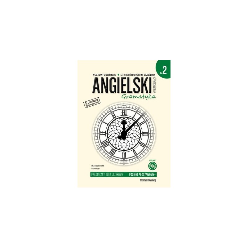 Druga część praktycznego kursu, który łączy w sobie ćwiczenie umiejętności mówienia z nauką zagadnień gramatycznych. Zawiera klarowne objaśnienia oraz ponad 1200 zdań i niezbędnych wyrażeń na poziomie podstawowym plus (A2) wraz z odpowiedziami. Mogą z niej również korzystać ci, którzy są już na wyższym poziomie i chcą powtórzyć podstawowe zagadnienia gramatyczne.