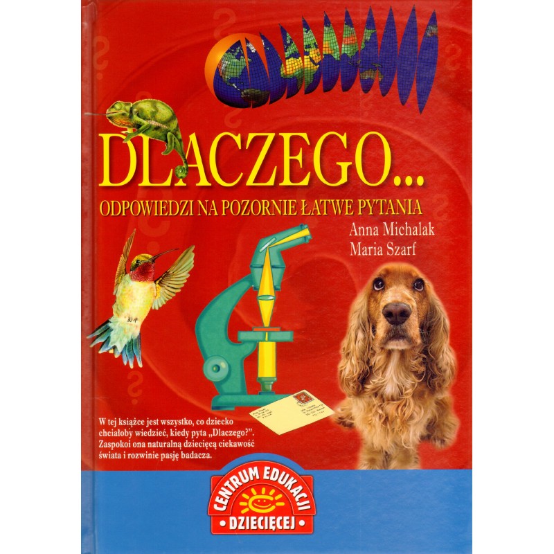 W tej książce jest wszystko, co dziecka chciałoby wiedzieć, kiedy pyta `Dlaczego?`. Zaspokoi ono naturalną dziecięcą ciekawość świata i rozwinie pasję badacza. Niezwykła książka, z którą odbędziesz podróż w głąb swojego ciała, dotkniesz chmur, przeniesiesz się w czasie! Czytanie tej książki to wielka przygoda! Dlaczego trawa jest zielona? Po co węgorzom baterie? Czy kangury chodzą na zakupy? Skąd się bierze deszcz? Tutaj znajdziesz odpowiedzi na te i wiele innych pytań. Ta książka pomoże: - dzieciom - które zaspokoją swoją ciekawość otaczającego świata i poszerzą wiedzę - rodzicom - znajdą tu odpowiedzi na pytania swoich pociech oraz pomogą rozwijać ich - nauczycielom - zastosują ją jako idealną pomoc dydaktyczną, która uatrakcyjni lekcję.