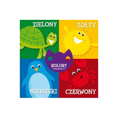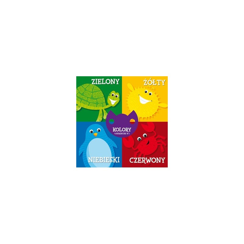 4 książeczki w 1 Dzięki tym pomysłowym książeczkom, dziecko, bawiąc się, pozna podstawowe kolory i nauczy się je nazywać. Ruchomy środek umożliwia przejrzenie wybranej części i dodatkowo pozwala maluszkowi ćwiczyć sprawność manualną. Zestaw idealny dla małych rączek, niezastąpiony na przykład w podróży. Zbierz je wszystkie! Zwierzęta Pory roku Kolory Kształty