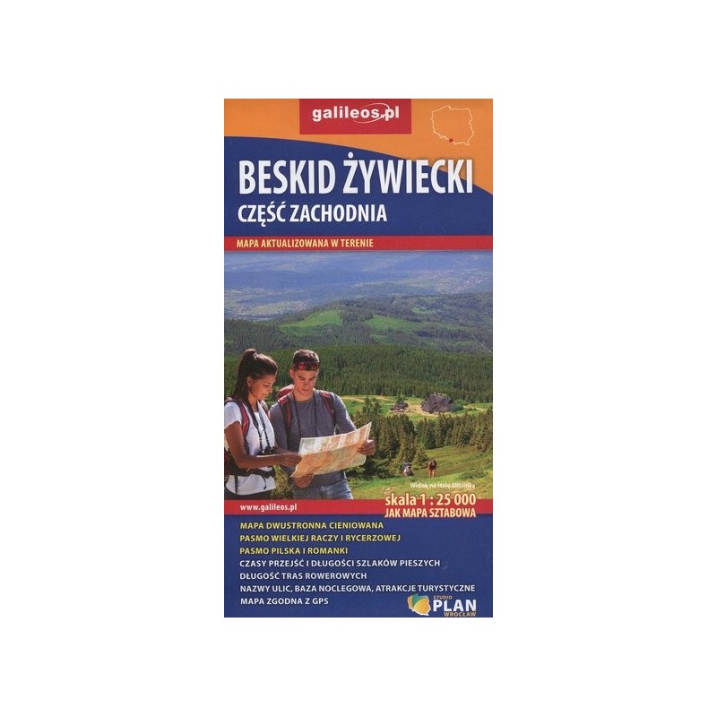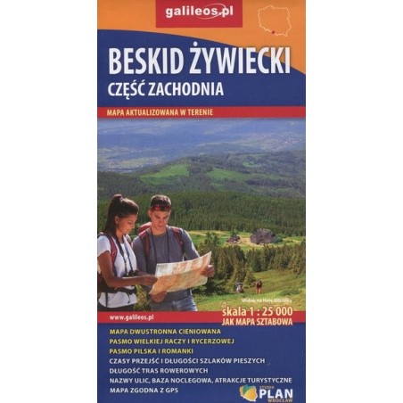 Szczegółowa mapa turystyczna z uwzględnieniem atrakcji, zabytków, ciekawych miejsc oraz infrastruktury turystycznej i sportowej. Zawiera aktualny przebieg szlaków pieszych i rowerowych wraz z kilometrażem i orientacyjnymi czasami przejścia. Mapa obejmuje zachodnią część pasma Beskidu Żywieckiego z miejscowościami: Węgierska Górka, Milówka, Korbielów, Rajcza, Zwardoń oraz pograniczem polsko-słowackim. Na mapie zastosowano cieniowanie dla plastycznego ukazania rzeźby terenu.