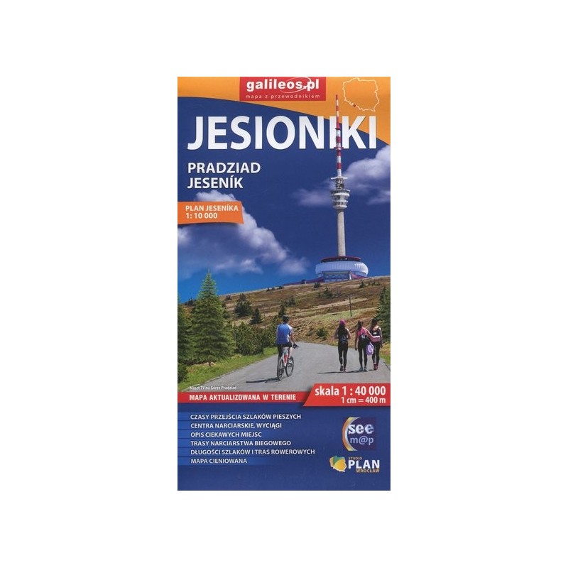 Opracowanie kartograficzne obejmuje Wysoki Jesionik z Pasmem Orlika oraz fragmentem Gór Rychlebskich i Zlatohorskiej Vrchoviny. Na mapie zaznaczono informacje przydatne turyście, jak zabytki, noclegi, granice obszarów chronionych, wyciągi narciarskie. Podano aktualne przebiegi szlaków pieszych, rowerowych i narciarskich łącznie z kilometrażem, co pozwoli łatwiej zaplanować wycieczkę. Ukształtowanie terenu pokazano przy pomocy warstwic o cięciu co 20 m. Mapa posiada siatkę geograficzną opartą na elipsoidzie WGS 84, stosowaną w nawigacji. Jest to obszar ograniczony współrzędnymi 16°56’ - 17°26’ długości geograficznej wschodniej oraz 50°00’-50°14’ szerokości geograficznej północnej. Na stronie opisowej mapy zamieszczono plan Jesenika w skali 1 : 10 000.