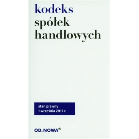 „Kodeks spółek handlowych” broszura – zawiera jednolity tekst ustawy z dnia 15 września 2000 r. Kodeks spółek handlowych oraz skorowidz przedmiotowy. Poprzez system przypisów publikacja umożliwia studentom i praktykom łatwe śledzenie zmian prawnych. Zaletą książki jest jej praktyczny, poręczny format, przejrzysty układ graficzny i niska cena. Łatwą orientację w materiale umożliwia obszerny skorowidz. Przepisy wchodzące w życie później niż podany stan prawny aktu prawnego, ale już ogłoszone w Dzienniku Ustaw podajemy w ramkach z zachowaniem przepisu w dotychczas obowiązującym brzmieniu. Stan prawny: 1 września 2017