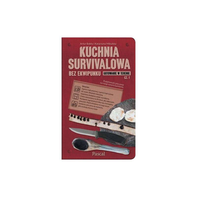 Niezwykły toolbook, który wyposażono w mocny rzemień umożliwiający rozpalenie ognia – najważniejszego narzędzia w walce o przeżycie. Ogień to ciepło, światło, ochrona przed dzikimi zwierzętami, ale także możliwość przygotowania posiłku. Co zjeść w lesie, jak przyrządzić to, co oferuje nam natura, piekąc w żarze, wykorzystując ruszt, dół ziemny lub gotując przy pomocy kamieni?