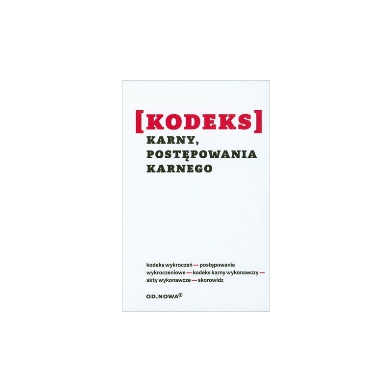Kodeks karny, postępowania karnego - Kompletny, zaktualizowany zbiór aktów prawnych, na który składają się kodeksy: karny (KK), postępowania karnego (KPK), karny wykonawczy (KKW), wykroczeń (KW), postępowania w sprawach o wykroczenia (KPSW), a także obszerny zbiór aktów wykonawczych. Tom zawiera całość materiału normatywnego, wyczerpującego treść prawa i postępowania karnego po reformach rozpoczętych w 2015 r., a kontynuowanych w dwóch kolejnych latach. Zbiór ustaw karnych przez system przypisów umożliwia studentom i praktykom szybkie i łatwe śledzenie zmian prawnych. Zaopatrzony jest w skorowidz ułatwiający bezproblemowe wyszukiwanie potrzebnych informacji za pomocą hasła tematycznego. Zredagowany został w przejrzysty i estetyczny sposób. Stan prawny 15 sierpnia 2017 r.