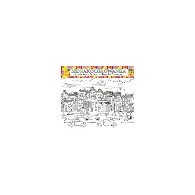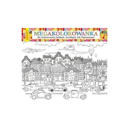 W kolorowym tekturowym etui dzieci znajdą olbrzymią zwiniętą planszę z wzorem przedstawiającym miasto do kolorowania farbami, kredkami lub flamastrami. Po jej rozwinięciu będą mogły stworzyć wyjątkowe dzieło sztuki. Przed nimi mnóstwo radości i zabawy. Powstanie jedyna w swoim rodzaju kolorowa plansza o wymiarach 98x68 cm. Dostępne wzory: Kosmos, Księżniczki, Las, Miasto, Morze, Wieś. Istnieje możliwość zamówienia zestawu zawierającego 24 kolorowanki (6 wzorów po 4 sztuki) w kolorowym, tekturowym ekspozytorze.