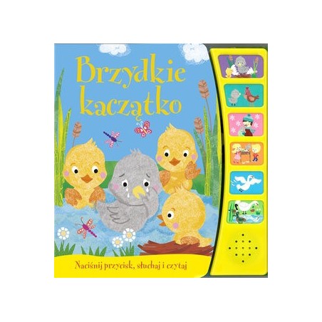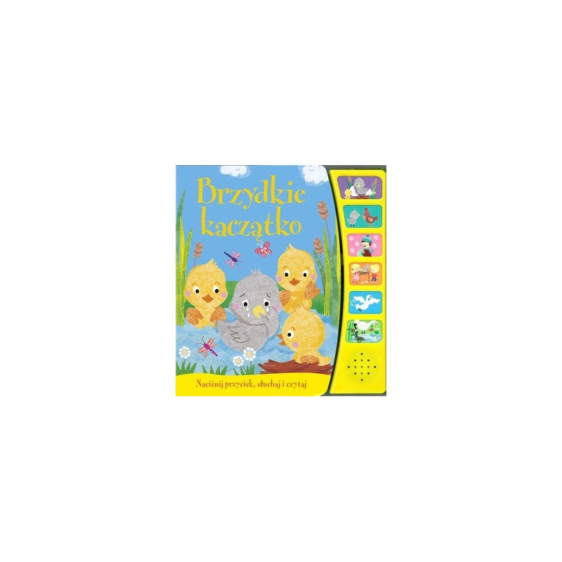 Przenieś się do krainy bajek. Naciskaj kolejno sześć dźwiękowych przycisków i słuchaj wzruszającej opowieści o brzydkim kaczątku i jego niezwykłych przygodach. Bajkę czyta Robert Michalak W tej serii m.in.: Złotowłosa i trzy misie, Czerwony Kapturek, Kopciuszek, Królewna Śnieżka, Trzy małe świnki, Śpiąca Królewna, Piękna i Bestia, Jaś i Małgosia, Brzydkie kaczątko, Mała syrenka, Roszpunka.