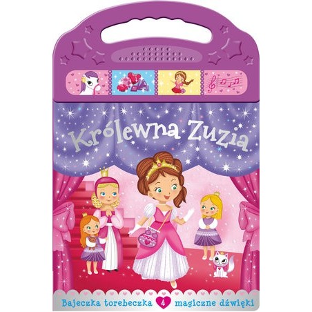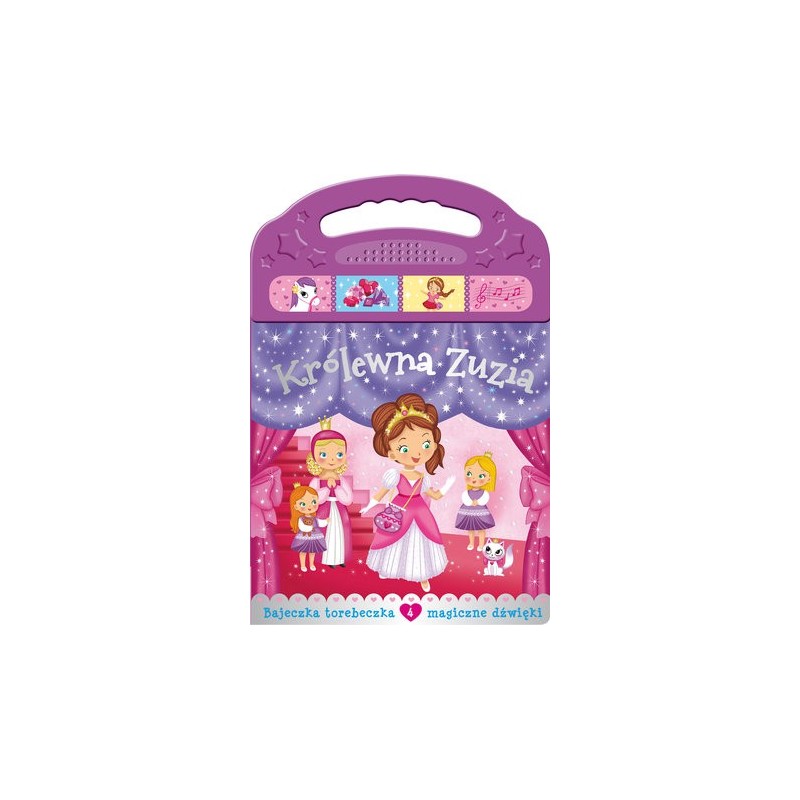 Książka w kształcie torebki, z panelem dźwiękowym. Sympatyczna historyjka o Królewnie Zuzi, która wybiera się na wielki bal. Lekturę i wyobraźnię dzieci ożywią magiczne dźwięki.