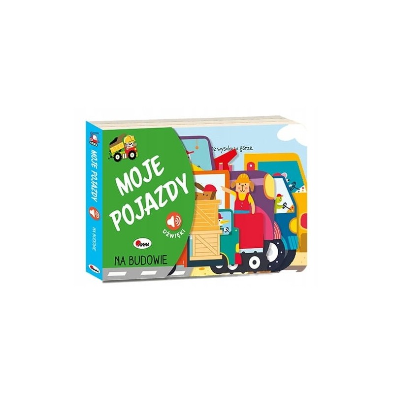 Książeczka sensoryczna – zawiera elementy dźwiękowe. Publikacja z wbudowanym modułem dźwiękowym! Książeczka z wykrojnikiem i dźwiękami – zawiera elementy DŹWIĘKOWE. Wspiera wszechstronny rozwój dziecka – pobudza ZMYSŁY SŁUCHU, WZROKU I DOTYKU, ROZWIJA WYOBRAŹNIĘ. Prezentuje POJAZDY BUDOWLANE. Zawiera krótkie TEKSTY opisujące scenki dotyczące pojazdów. Książka zapoznaje małych czytelników z POJAZDAMI BUDOWLANYMI. Dzieci znajdą w niej proste i krótkie TEKSTY opisujące scenki dotyczące pojazdów. Wyróżnikiem publikacji są WYKROJNIKI poszczególnych STRON oraz DŹWIĘKI. Dzięki niej maluch dowie się, jakie dźwięki wydają wózek widłowy, betoniarka, koparka, ładowarka, wywrotka czy dźwig. Staranne, zabawne ILUSTRACJE charakteryzują się ŻYWĄ KOLORYSTYKĄ.