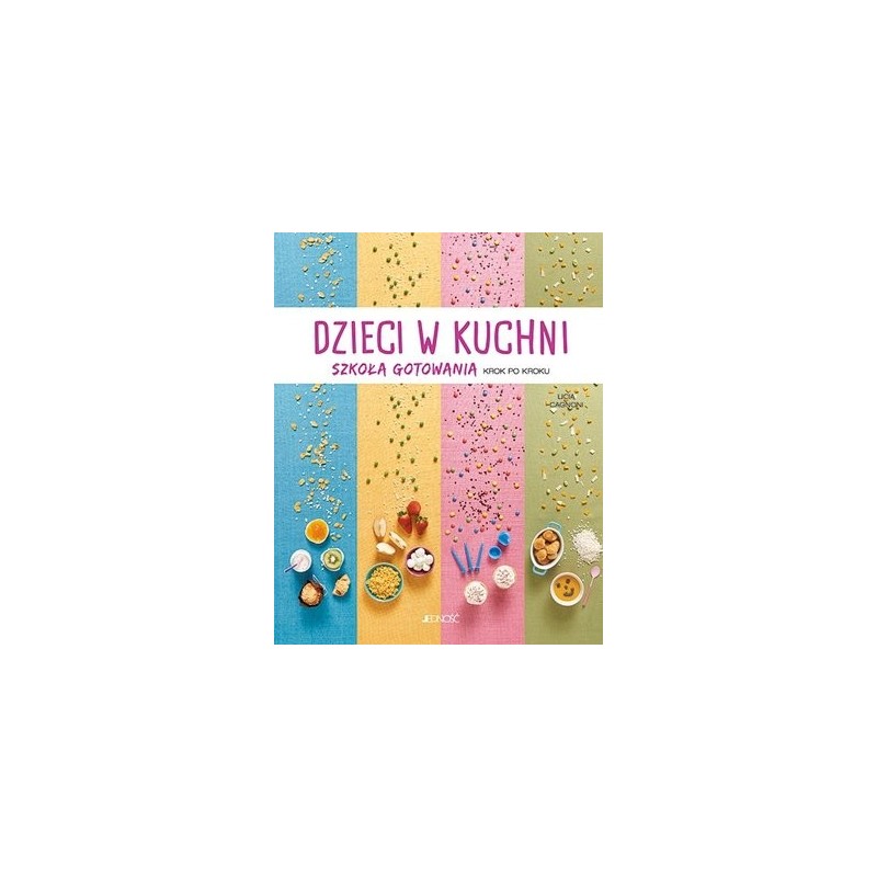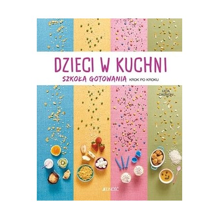 Dzieci w kuchni. Szkoła gotowania krok po kroku to łatwy i szybki kurs gotowania przedstawiony na ponad 500 fotografiach krok po kroku. Wszystkie składniki i kolejne czynności zostały sfotografowane z góry: dzięki temu wystarczy spojrzeć na zdjęcia, żeby zrozumieć, co jest potrzebne do gotowania, nawet bez czytania przepisu. Książka jest kolorowa i zabawna, została przygotowana z myślą o tych, którzy chcą połączyć pasję do dobrego jedzenia z radością wspólnego gotowania. Książkę rozpoczyna wprowadzenie na temat powiązań dzieci ze sztuką przyrządzania potraw. Wstęp poświęcony jest podstawowym technikom wykonania posiłków, regułom zdrowego żywienia oraz sposobom, dzięki którym dziecko może bezpiecznie przebywać w kuchni. Potrawy podzielono według ich różnego przeznaczenia: na śniadania, przekąski, obiady i kolacje, a także na dania świąteczne. Posiłki zostały zaplanowane dla 4 osób, ciasta i desery dla 6–8 osób.