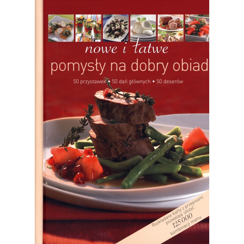 125 000 kombinacji przystawek, dań głównych i deserów - oto dlaczego dzięki tej książce nikomu z pewnością nie zabraknie pomysłów na urozmaicony i pyszny posiłek! Clou tej książki to spiralne bindowanie i praktyczny podział stron na trzy kategorie potraw, dzięki czemu wszystkie karty z przepisami dają się przeglądać niezależnie od siebie. Każdą przystawkę można więc dopasować do każdego dania głównego oraz każdego deseru i od razu zobaczyć ułożone przez siebie menu.