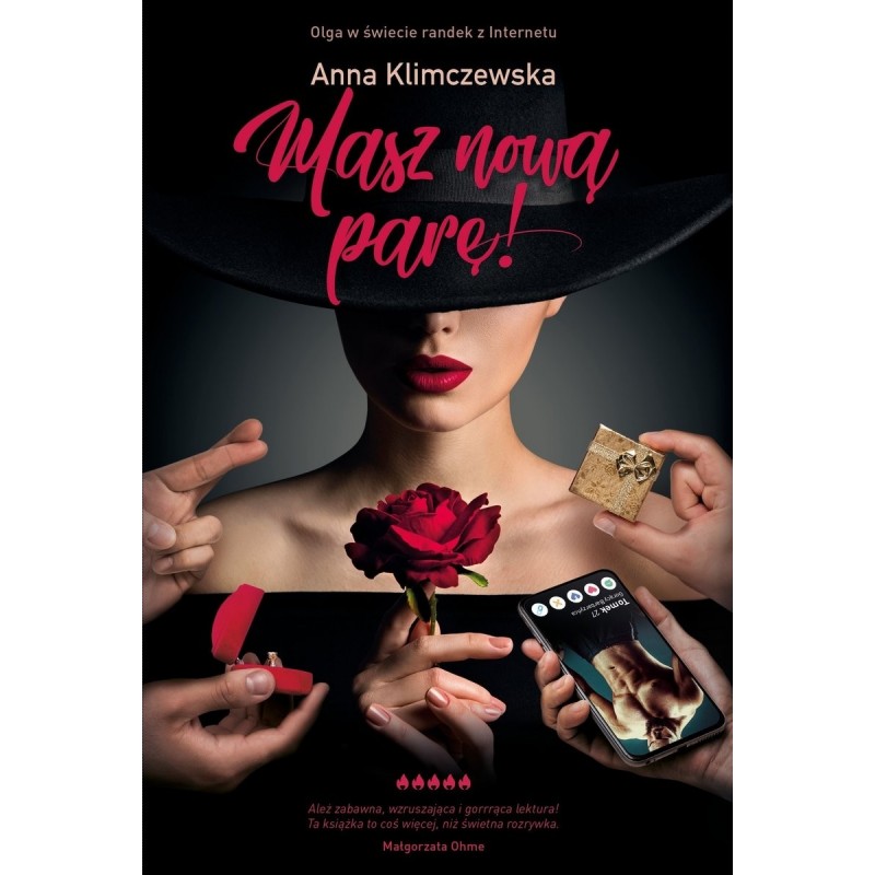 Olga ma 41 lat, właśnie się rozwiodła i szuka miłości na portalu randkowym. Kogo znajduje? Znudzony żonkoś 30: U ciebie czy w hotelu? Ale płacimy po puł. Bolo 19: Uwielbiam ostre mamuśki. Chcem być twoim uległym. Zrub ze mnie swojego psa, będe ci lizał buty. Darek 44: Mogę tylko w ciągu dnia, najchętniej u ciebie. Jak nie pasuje to nara! Cóż, nikt nie obiecywał, że to będzie proste. Ważne, żeby nie było niemożliwe. Chcesz spróbować randek w sieci? Najpierw przeczytaj tę książkę. Jeśli wydaje się Wam, że aplikacje „erotyczno-poszukiwawcze” są zarezerwowane dla 20 latków, którzy mają problem z nawiązaniem relacji offline to grubo się mylicie. Olga nie ma 20 lat, 30 też nie. Jest piękną, zadbaną i turbo inteligentną kobietą. Chociaż problem faktycznie ma. Brak faceta. Tu z pomocą przychodzi nowoczesna technologia i swipe w prawo albo w lewo. Skupmy się jednak na tym co po prawej. Kogo możecie tam spotkać, na co liczyć, jakie emocje, jaki… sex? I w końcu najważniejsze pytanie, czy tam gdzieś jest miłość? Zapraszam do tej lektury. Olgę polubicie od pierwszej strony, zresztą znacie ją doskonale. Jest Waszą sąsiadką, koleżanką z open space, kumpelą, z którą kochasz pić do rana wino. To moja najlepsza książka sezonu i murowany Bestseller. Filip Chajzer Ależ zabawna, wzruszająca i gorrrąca lektura! Ta książka to też coś więcej niż świetna rozrywka. To opowieść o tęsknocie za bliskością z drugim człowiekiem, o nadmiarowych oczekiwaniach i gorzkich rozczarowaniach, o nieporadności w wyrażaniu uczuć. Bohaterka podróżując od randki do randki podróżuje tak naprawdę w głąb siebie, do świata swoich potrzeb. Małgorzata Ohme Genialna satyra na współczesne relacje! Będąc przez ponad 20 lat w związku nie miałam pojęcia jak wyglądają współczesne techniki zawierania znajomości. Nie przypuszczałam, że randkowanie przeniosło się głównie do sieci, w której aż roi się od pułapek o dziwacznych nazwach ONS czy FWB. Jakie to szczęście, że nie jestem singielką i że przy lekturze tej książki mogłam się tak świetnie bawić i śmiać do rozpuku! Gorąco polecam! Daria Ładocha