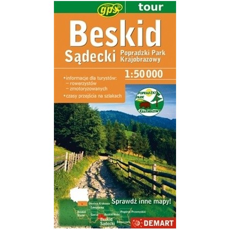 Mapę turystyczną Beskidu Sądeckiego przygotowano dla turystów pieszych, rowerowych i zmotoryzowanych. Wśród ciekawych turystycznie obiektów, szczególnie wyróżniono obiekty leżące na Szlaku Architektury Drewnianej. Oprócz treści turystycznych zaznaczonych bezpośrednio na mapie, dodano ilustrowany zdjęciami informator krajoznawczy o Popradzkim Parku Krajobrazowym oraz wybrane informacje praktyczne. Poziomice na mapie poprowadzono co 10 m, a ponadto dla uplastycznienia rzeźby terenu dodano cieniowanie. Ponadto naniesiono siatkę kilometrową w układzie PUWG – 92, WGS84 umożliwiającą współpracę z urządzeniami nawigacyjnymi (GPS).