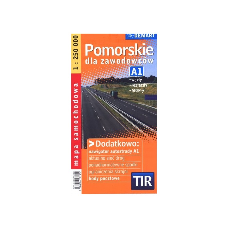 Mapa przeznaczona jest nie tylko dla kierowców zawodowych (TIR-ów, ciężarówek,) ale i dla wszystkich innych kierowców, którzy dużo jeżdżą po Polsce. Ma rozbudowaną treść tematyczną przydatną kierowcom zawodowym: - nawigator autostrady A1 - ponadnormatywne spadki z opisem stopnia nachylenia, - pionowe i poziome ograniczenia skrajni, - spis kodów pocztowych, Przedstawiona sieć dróg uwzględnia budowane odcinki: autostrad, dróg krajowych i wojewódzkich przewidzianych do użytku do końca 2013 roku. Skala: 1:250 000