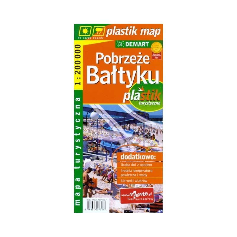Swoim zasięgiem mapa obejmuje całe polskie wybrzeże Bałtyku. Niezastąpiona dla nadmorskich wczasowiczów, którzy chcą się wybrać na samochodową, lub np. rowerową wycieczkę po okolicy. Oprócz typowej treści mapy samochodowo turystycznej w tej skali, mapa zawiera informacje o danych klimatycznych: liczba dni z opadem, średnia temperatura powietrza i wody, kierunki wiatrów. Mapa wyposażona jest w spis miejscowości. Dzięki laminowaniu jest trwalsza, nie niszczy się tak szybko na zgięciach i jest odporna na wpływ warunków atmosferycznych.