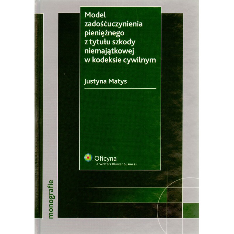 Prezentowana monografia jest analizą przyjętego na gruncie kodeksu cywilnego modelu zadośćuczynienia pieniężnego jako sposobu naprawienia szkody niemajątkowej doznanej w wyniku naruszenia dóbr osobistych, a także zadośćuczynienia pieniężnego przyznawanego z tytułu śmierci osoby najbliższej. Rozważania Autorki skupiają się wokół najważniejszych dla tej instytucji aspektów, obejmując problematykę celów, jakie ma realizować zadośćuczynienie, funkcji, przesłanek odpowiedzialności, jak też wysokości przyznawanych tytułem zadośćuczynienia sum pieniężnych. Opracowanie przedstawia również czynniki, które wpłynęły na kierunek ewolucji oraz historyczne i ustrojowe uwarunkowania instytucji zadośćuczynienia. Uwzględnia także rozwiązania przyjęte w obcych systemach prawnych, regulujące kwestię majątkowego wynagradzania szkody niemajątkowej w różny sposób. Całość została dobrze udokumentowana z szerokim uwzględnieniem praktyki orzeczniczej, w tym także sądów zagranicznych.