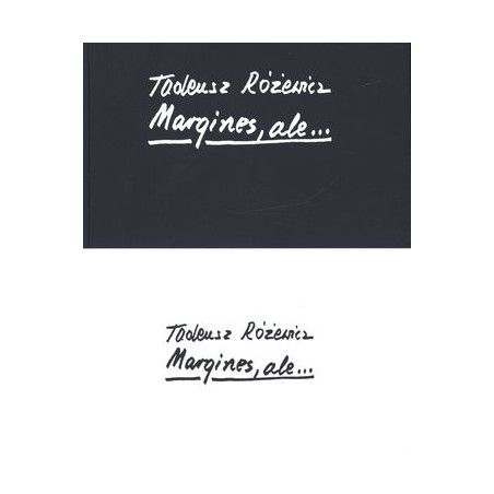 Margines, ale... Tak nazwał Tadeusz Różewicz rubrykę we wrocławskiej `Odrze`, w której w latach 1969-1976 zamieszczał różnorodne teksty. Część z nich znalazła się w wydaniach książkowych, ale też wiele autor pominął, nawet w Utworach zebranych Wydawnictwa Dolnośląskiego. Przypominamy je w tym tomie. Jednak większość utworów pominiętych wybraliśmy z całej prasy polskiej - od wczesnych lat pięćdziesiątych po ostatnie lata. Owe noty, listy, szkice, reportaże, fragmenty dziennikowe, mowy - silva rerum - stanowią bogactwo myśli i faktów poszerzających wiedzę biograficzną i wprowadzających w nieznane obszary twórczości autora Kartoteki. Jest to `margines` jego pisarstwa, `ale` znaczący, a niekiedy istotnej wagi. Rozmaitość tematów, zwięzłość stylu, skala tonacji (żart, wyznanie i powaga spraw ostatecznych) sprawiają, że ta książka będzie mieć wiernych czytelników, podobnie jak przed laty Przygotowanie do wieczoru autorskiego.