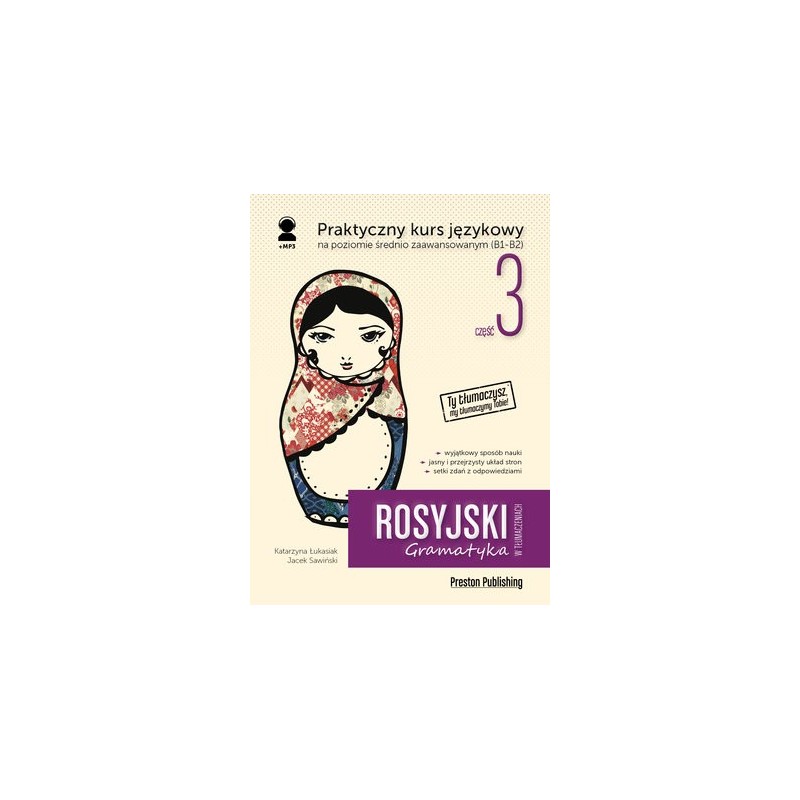 Trzecia część niezwykle skutecznej i przystępnej serii do nauki języka rosyjskiego. Jeśli chcesz opanować język na poziomie średnio zaawansowanym i swobodnie radzić sobie w sytuacjach komunikacyjnych z zachowaniem poprawności gramatycznej, jest to książka właśnie dla Ciebie.