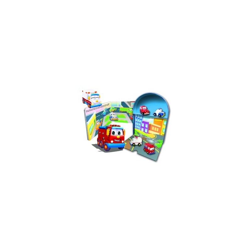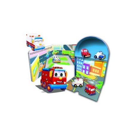 Ten ciekawy interaktywny zestaw zawiera książeczkę oraz cztery samochodziki i planszę do zabawy.
